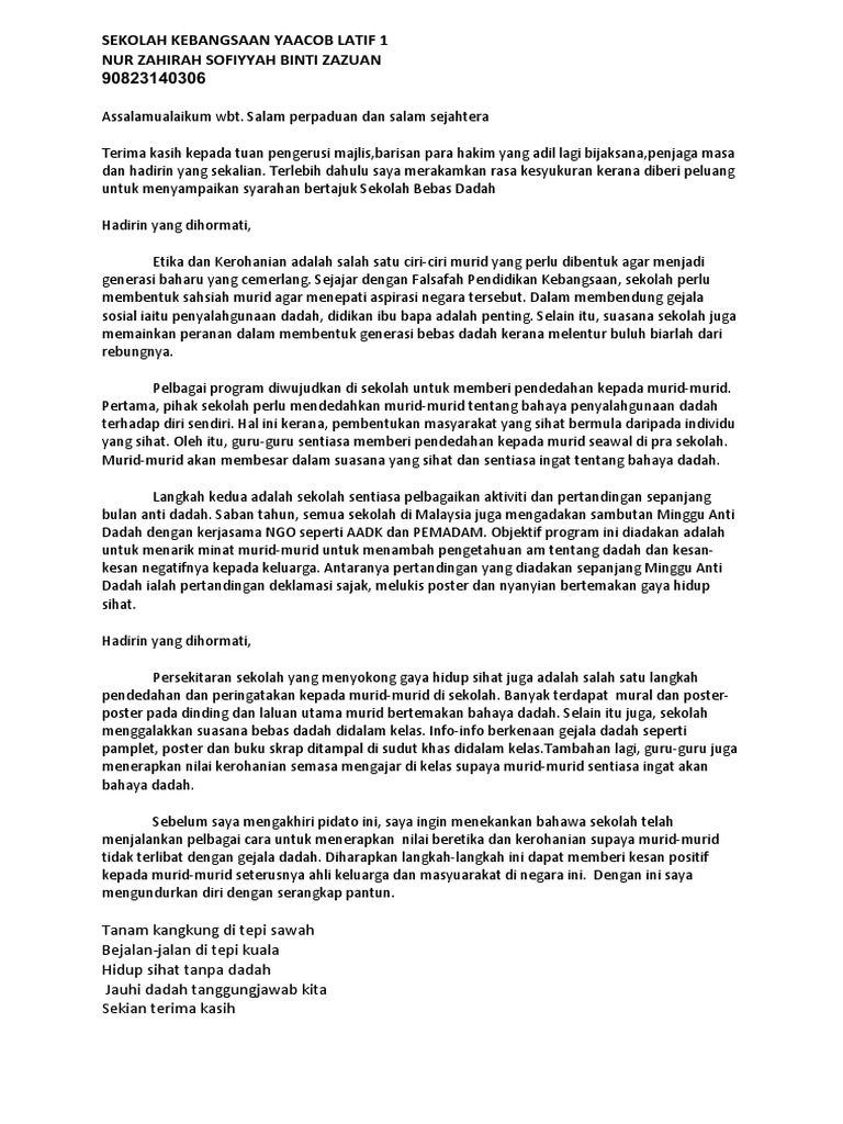 Teks Pidato Sekolah Bebas Dadah Pdf